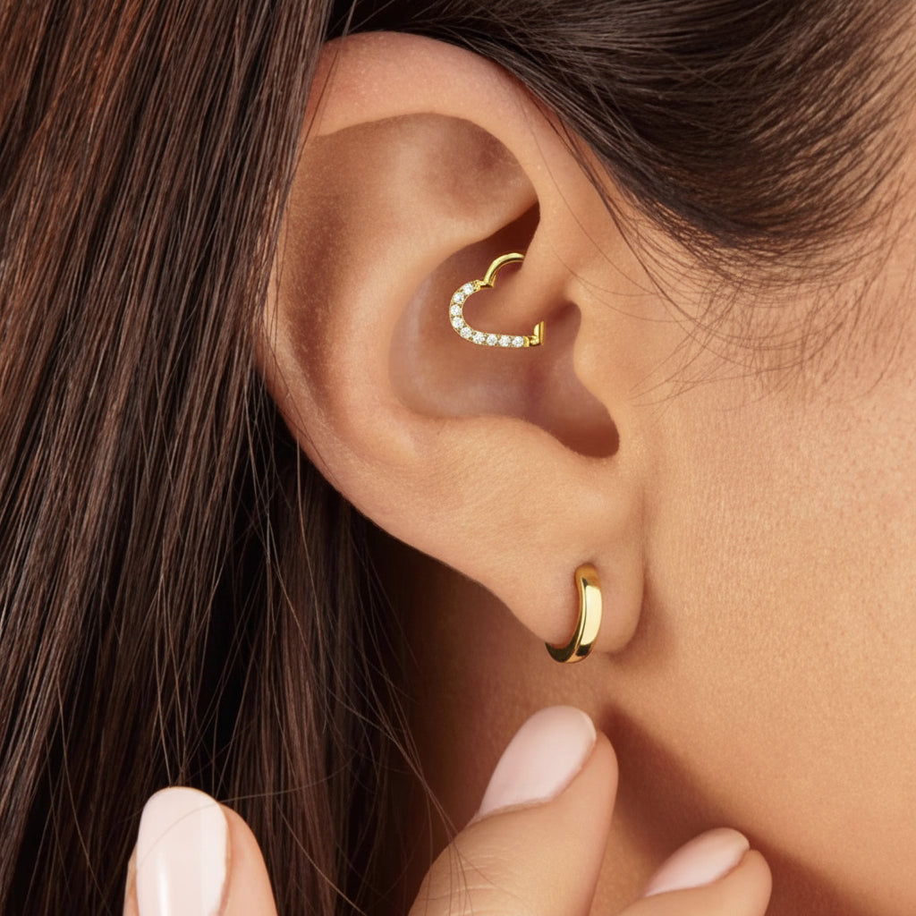 Precision-engineered for seamless insertion and secure closure, this 16-gauge (1.2mm) x 8mm hoop combines biocompatible material with elegant design. The sparkling CZ heart adds refined detail to a versatile essential.