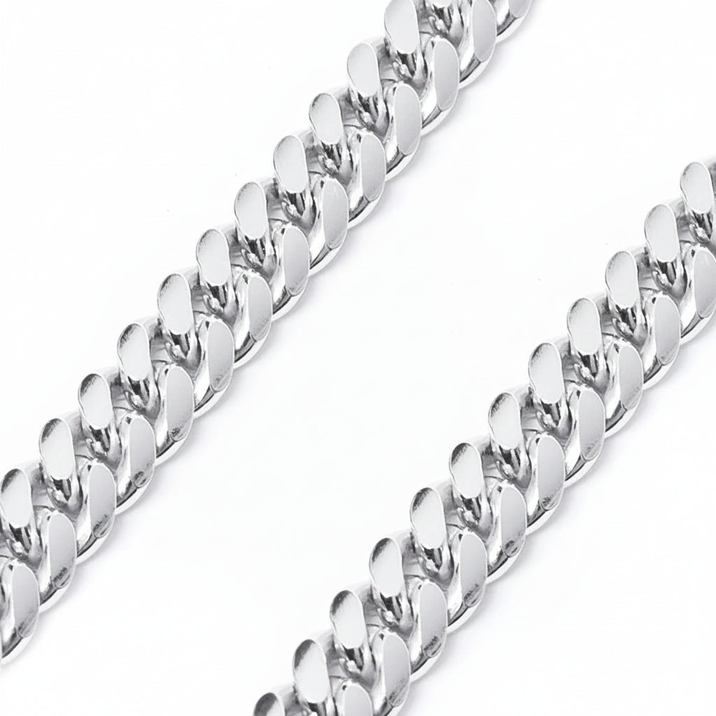 This sterling silver Cuban link chain features a robust 8mm width, crafted from authentic .925 sterling silver with a non-radiant plating finish that enhances durability and maintains a refined appearance. Sourced from Italian chain manufacturers renowned for precision engineering, each link is meticulously constructed to ensure consistent quality and longevity. The classic Cuban link design offers substantial presence while remaining versatile enough for both everyday wear and statement styling. Ideal for layering or wearing solo, this chain combines traditional craftsmanship with the timeless appeal of sterling silver.